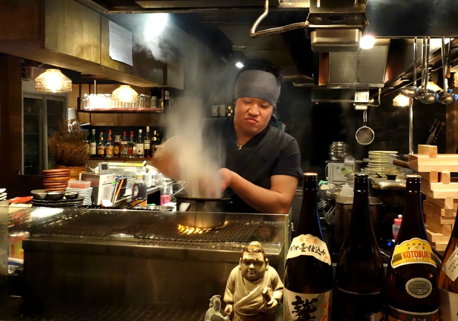 「焼き場はいつも灼熱!オープンキッチンだからこそ、汗やニオイには特に気を遣っています。」
